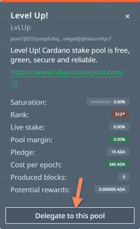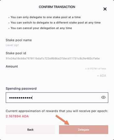 - Thank you! Your stake is now delegated to Level Up! Stake pool.